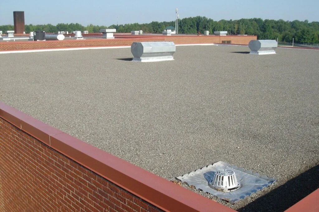 Flat Roofs: Built-up roof (BUR) membranes, low-slope metal panel roofs, polymer-modified bitumen membranes, single-ply membranes, thermoplastic membranes (e.g., PVC, TPO), thermoset membranes (e.g., EPDM), and spray polyurethane foam-based (SPF) roof systems.